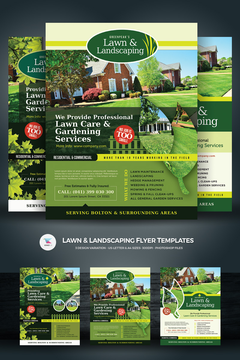 Download Фирменный стиль "Lawn & Landscaping Flyers - Corporate Identity Template" / Lawn & Landscaping Flyers - Corporate Identity Template - Фирменный стиль на тему графика ad advert care commercial flyer garden gardening grass green installation landscape landscaping lawn lawnmower leaflet magazine mowing pamphlet poster specialist