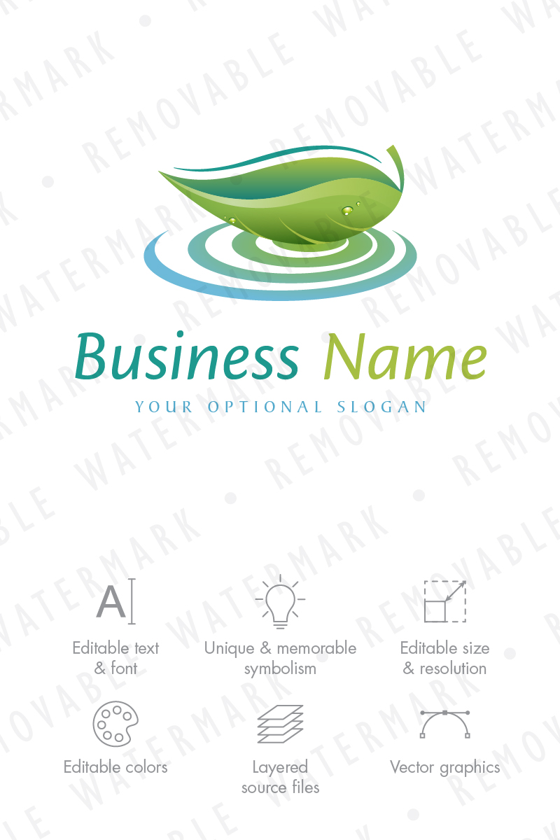 Download Шаблон логотипа "Leaf on Water Logo Template" / Leaf on Water Logo Template - Шаблон логотипа на тему графика plant nature leaf water life fresh spa beauty pond drop boat impact ripple tranquility surface fallen floating logo design template