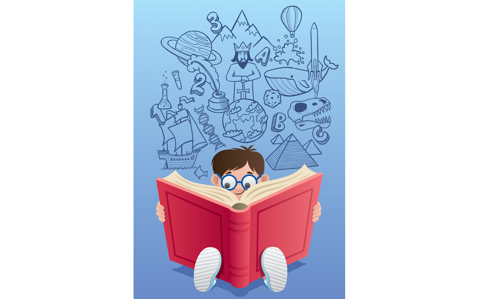 Download Иллюстрация "Learning - Illustration" / Learning - Illustration - Иллюстрация на тему графика learning,boy,book,school,back to school,little,young,child,kid,reading,studying,looking,sitting,schoolboy,student,doodle,hand drawn,concept,knowledge,literature