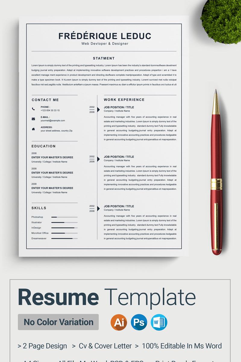 Download Резюме "Leduc Resume Template" / Leduc Resume Template - Резюме на тему графика 2 page a4 clean cv design elegant resume female feminine infographic letter minimalist modern portfolio professional indesign minimal pages