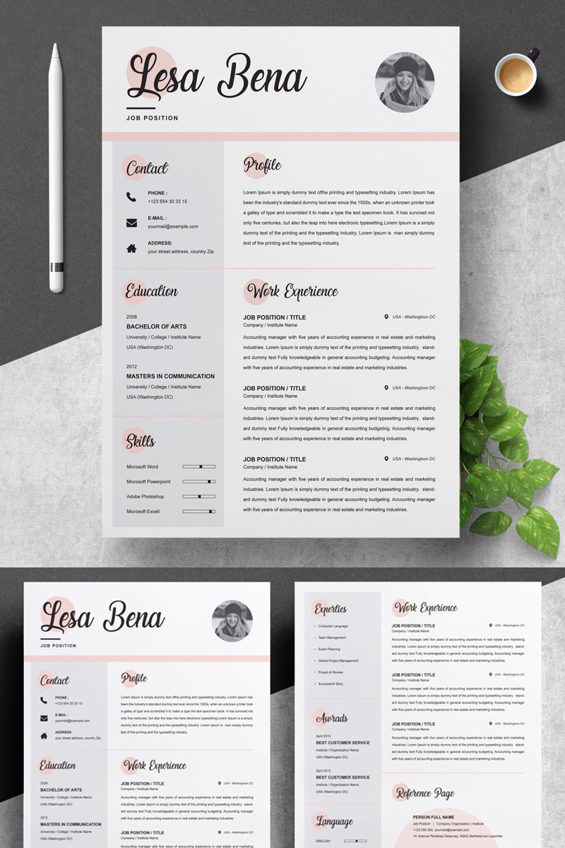 Download Резюме "Lesa Resume Template" / Lesa Resume Template - Резюме на тему графика 1 page resume 2 clean cv cover letter design template illustrator eps mac pages microsoft word modern photoshop psd professional