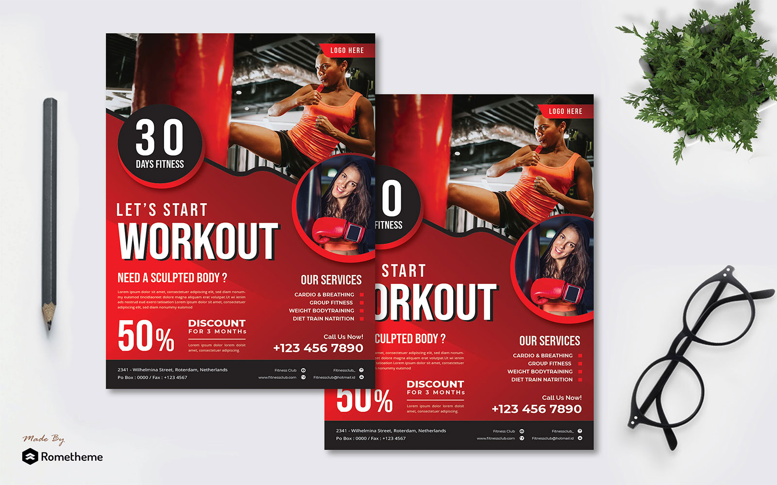 Download Фирменный стиль "Lets Workout - Flyer AC - Corporate Identity Template" / Lets Workout - Flyer AC - Corporate Identity Template - Фирменный стиль на тему графика banner,brochure,business,creative,design,fitness,flyer,gym,healty,print,promotion,psd,services,sporty,template,trainer,workout