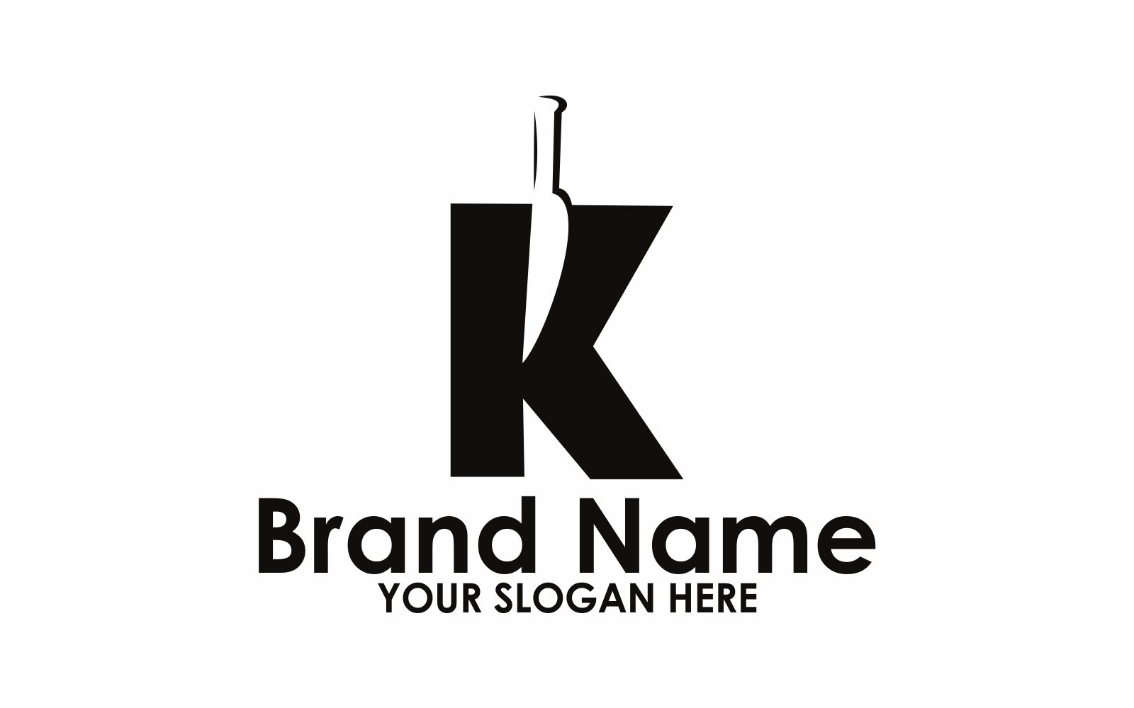 Download Шаблон логотипа "Letter K knife Logo Template" / Letter K knife Logo Template - Шаблон логотипа на тему графика knife,vector,letter,alphabet,symbol,design,food,restaurant,logo,graphic,template,chef,letter k,kitchen,logotype,initial,font,modern,black
