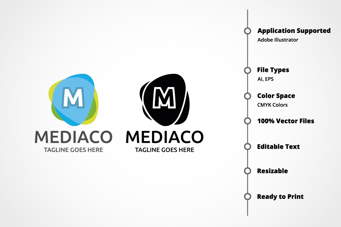 Download Шаблон логотипа "Letter M - MediacoL Logo Template" / Letter M - MediacoL Logo Template - Шаблон логотипа на тему графика abstract,ad agency,branding,creative,letter,letter m,m logo,media,mega,micro,mobile app,mobile apps,modern,multi color,multicolor,multimedia logo,play,simple,studio,win