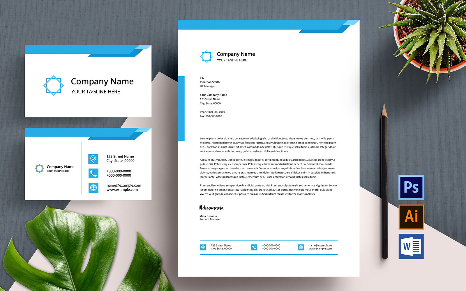 Download Фирменный стиль "Letterhead and Business Card - Corporate Identity Template" / Letterhead and Business Card - Corporate Identity Template - Фирменный стиль на тему графика ai,blue,clean,corporate,creative,design,editable,fresh,indd,letterhead,minimal,minimalist,ms word,print template,psd,template
