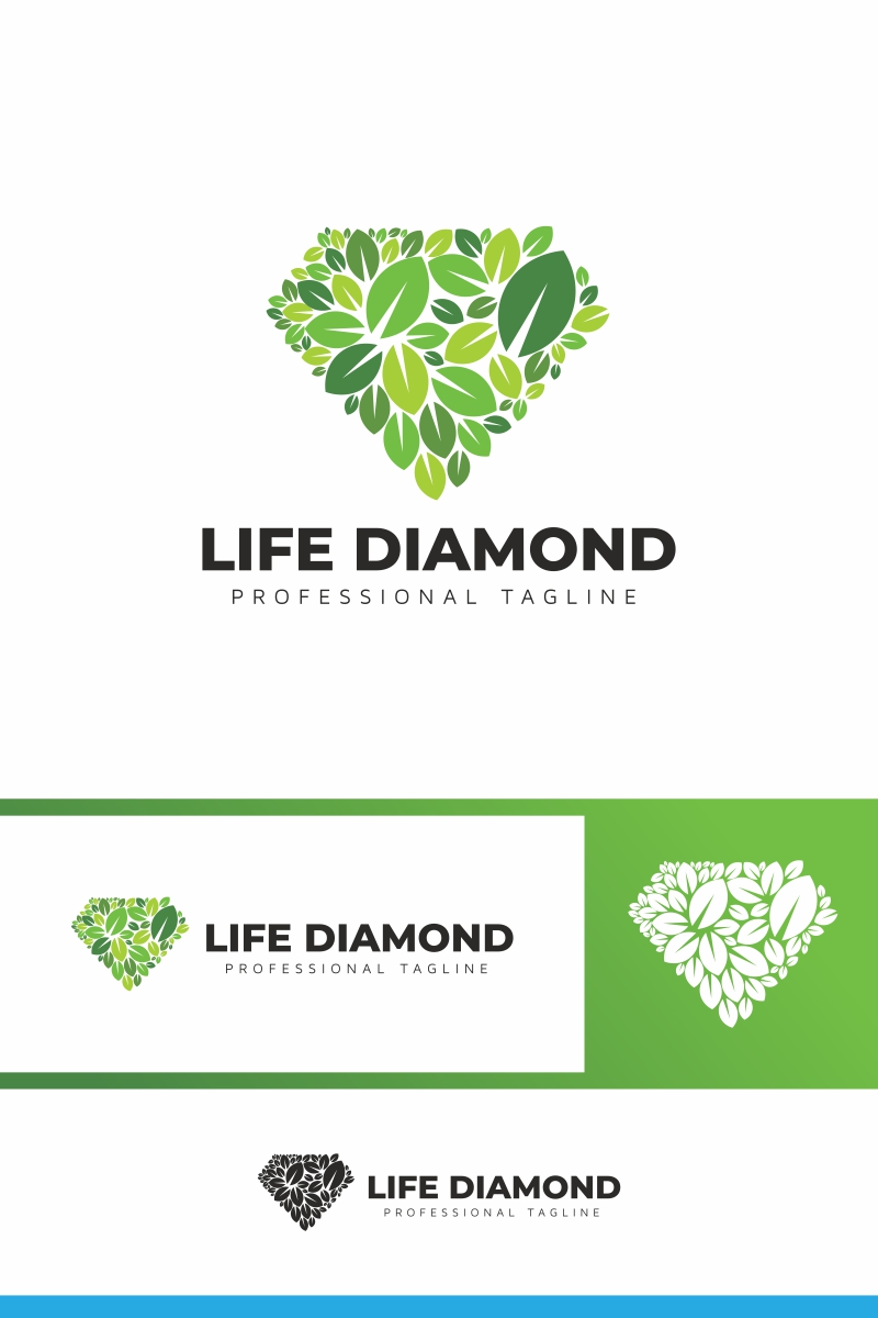 Download Шаблон логотипа "Life Diamond Logo Template" / Life Diamond Logo Template - Шаблон логотипа на тему графика agency amber app art crystal diamond emerald entertainment game gem green jewel jewellery leaf leave media multimedia nature rich ruby
