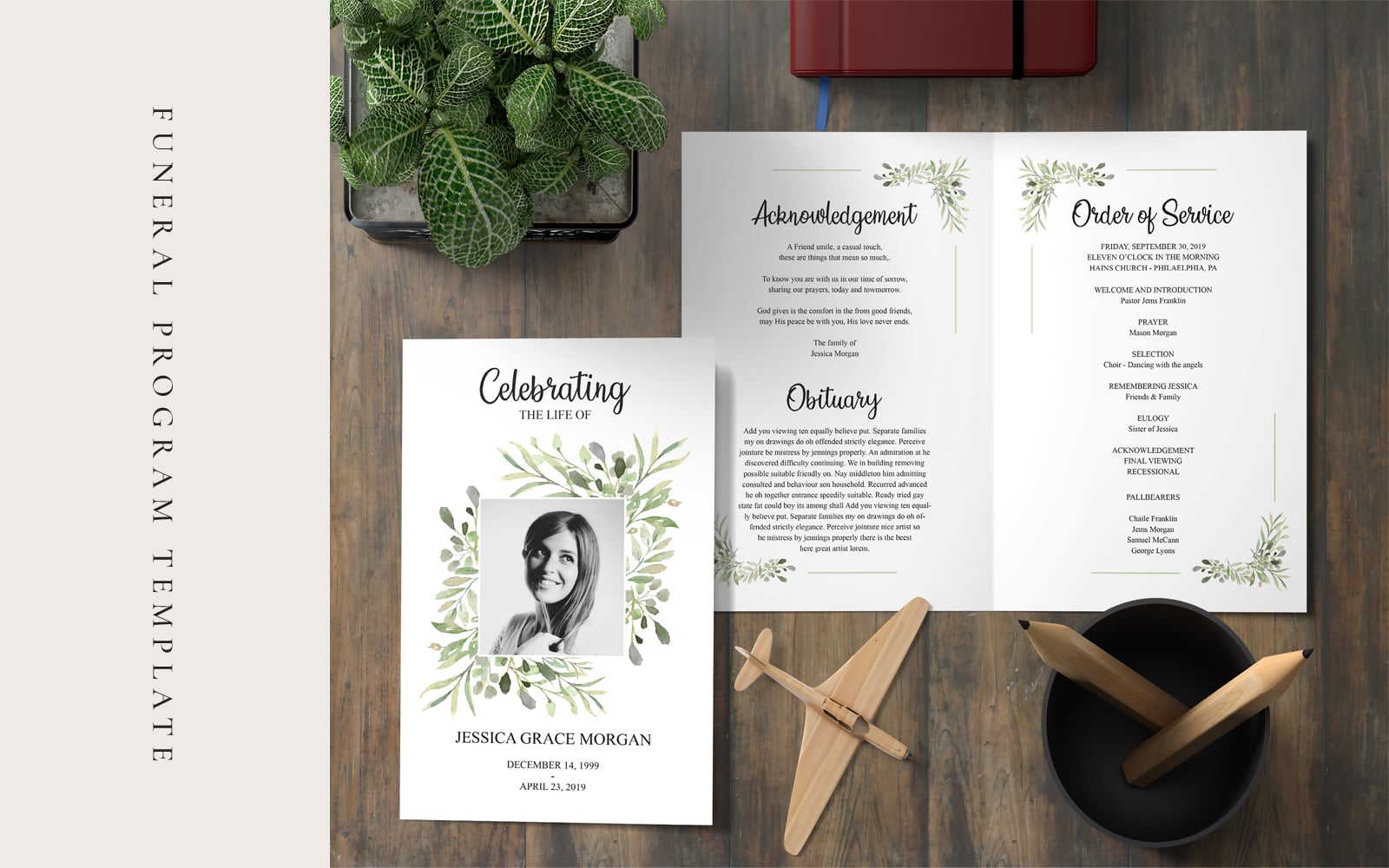 Download Фирменный стиль "Light Green Floral Funeral Program - Corporate Identity Template" / Light Green Floral Funeral Program - Corporate Identity Template - Фирменный стиль на тему графика funeral program,program template,obituary template,poem template,celebration of life,memorial program,dove funeral,order of service,time of loss,men funeral,women funeral african american,af