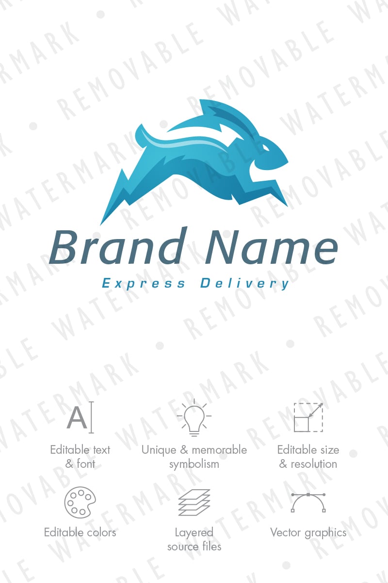Download Шаблон логотипа "Lightning Rabbit Logo Template" / Lightning Rabbit Logo Template - Шаблон логотипа на тему графика energy fast speed delivery power flash run electricity lightning storm bunny rabbit thunder rapid swift logo design template transportation travel