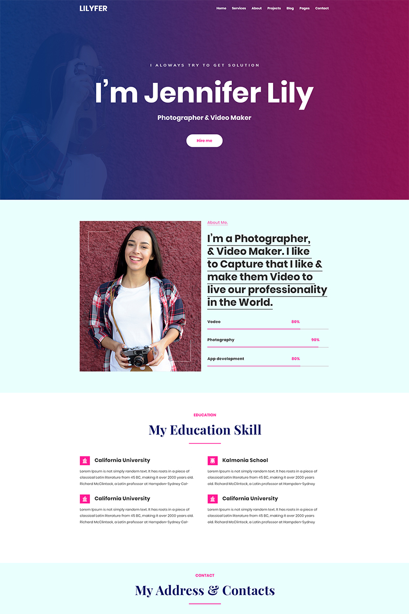 Download PSD шаблон "Lilyfer | Personal Portfolio PSD Template" / Lilyfer | Personal Portfolio PSD Template - PSD шаблон на тему аутсорсинговая компания business clean creative cv minimal modern one page personal portfolio responsive resume vcard