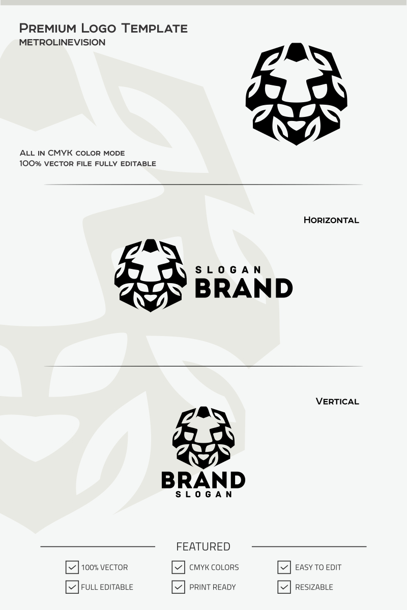 Download Шаблон логотипа "Lion Head Logo Template" / Lion Head Logo Template - Шаблон логотипа на тему графика animal club creative crest design gold lion graphic head hotel icon illustrator image king logo luxurious luxury mascot media predator