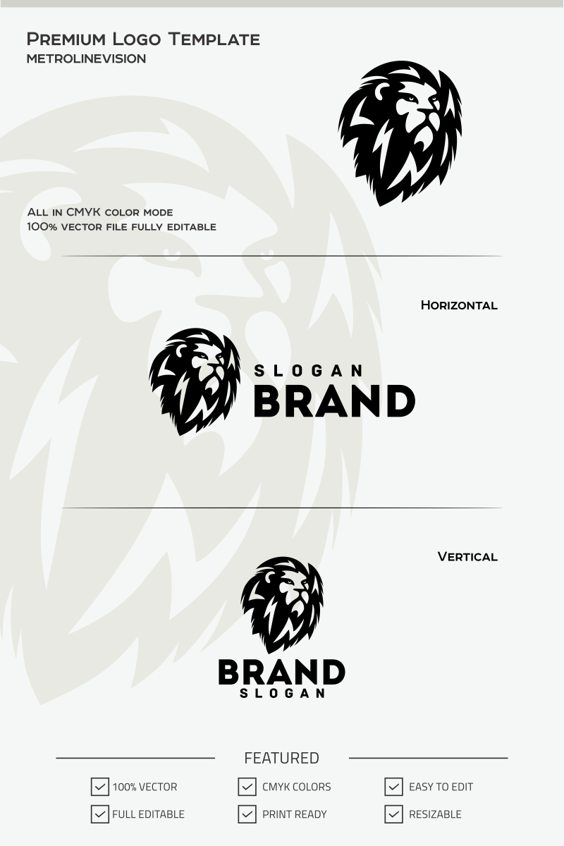 Download Шаблон логотипа "Lion Logo Template" / Lion Logo Template - Шаблон логотипа на тему графика head king lion marketing power sport strength strong wild animal animal logo branding club company elegant jungle logo vector luxury