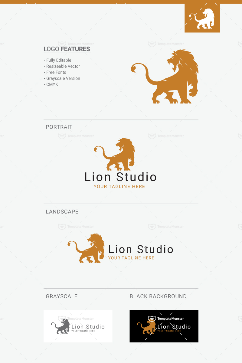 Download Шаблон логотипа "Lion Studio - Logo Template" / Lion Studio - Logo Template - Шаблон логотипа на тему графика animal business colorful consultant corporate digital finances financial firm funds investing investment king kingdom lion head logo majestic marketing media