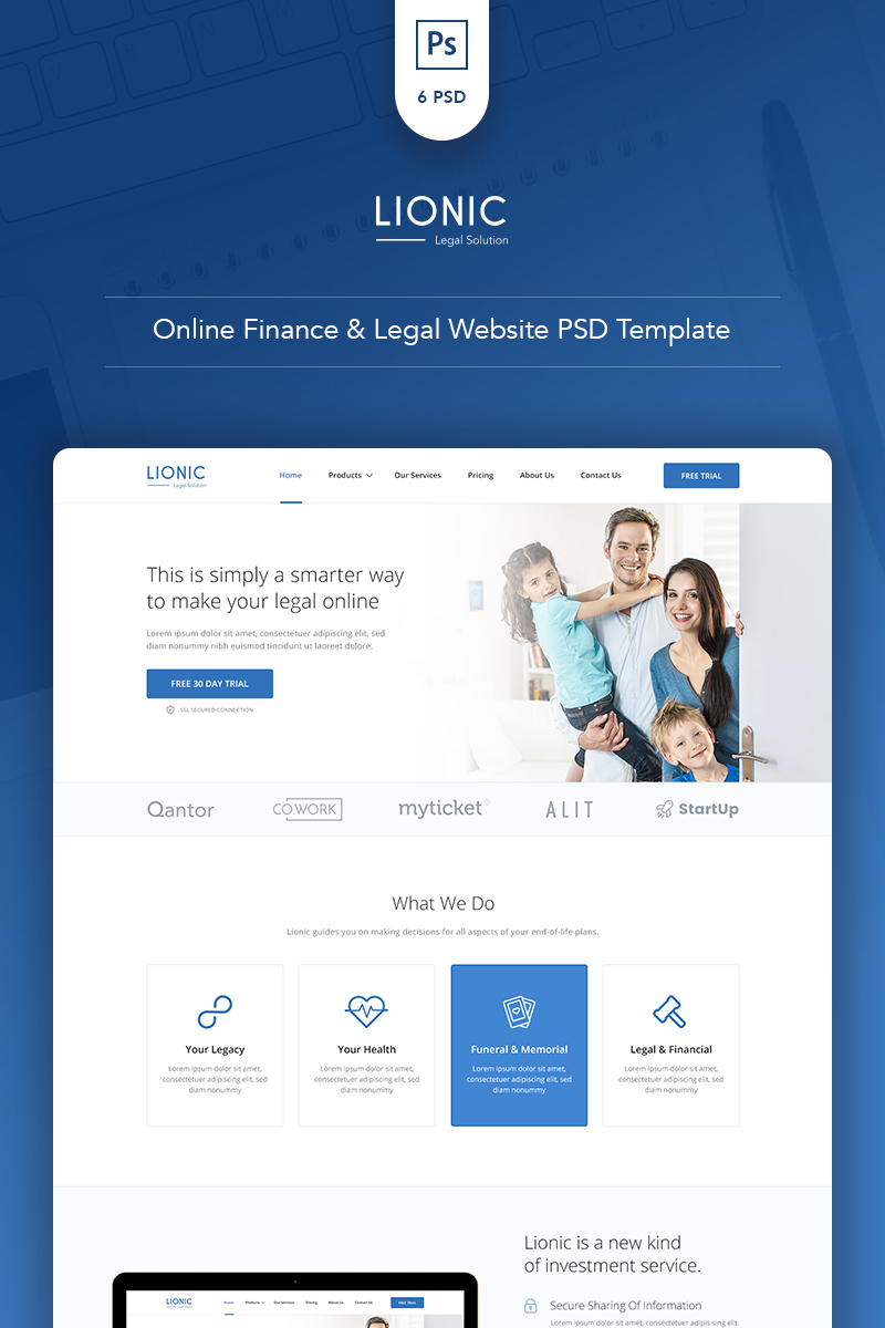 Download PSD шаблон "Lionic - Online Finance & Legal PSD Template" / Lionic - Online Finance & Legal PSD Template - PSD шаблон на тему финансы blue clean corporate critical data finance information legal middle age office old online psd security template