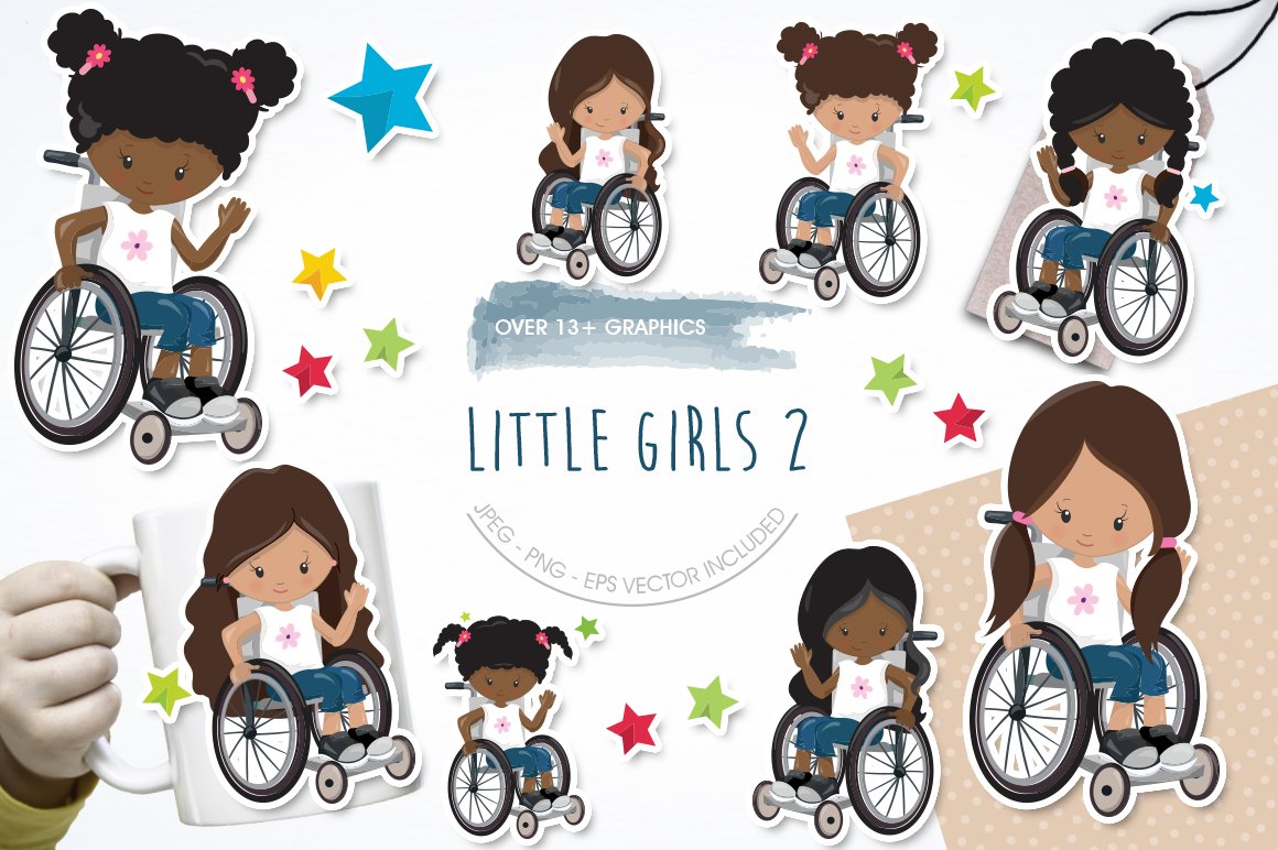 Download Vector "Little Girls 2 - Vector Image" / Little Girls 2 - Vector Image - Vector на тему графика scrapbook,scrapbooking,clipart,clip art,prettygrafik,girl on wheelchair,wheelchair,vector art,girls on wheelchair