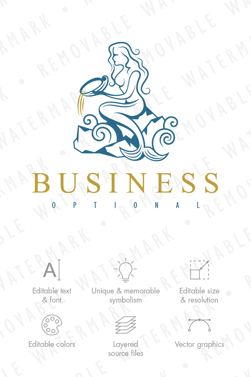 Download Шаблон логотипа "Little Mermaid - Logo Template" / Little Mermaid - Logo Template - Шаблон логотипа на тему графика water artistic love beauty sea mermaid siren logo design template music melody voice aquarius legend mesmerize charm spa seashell maiden