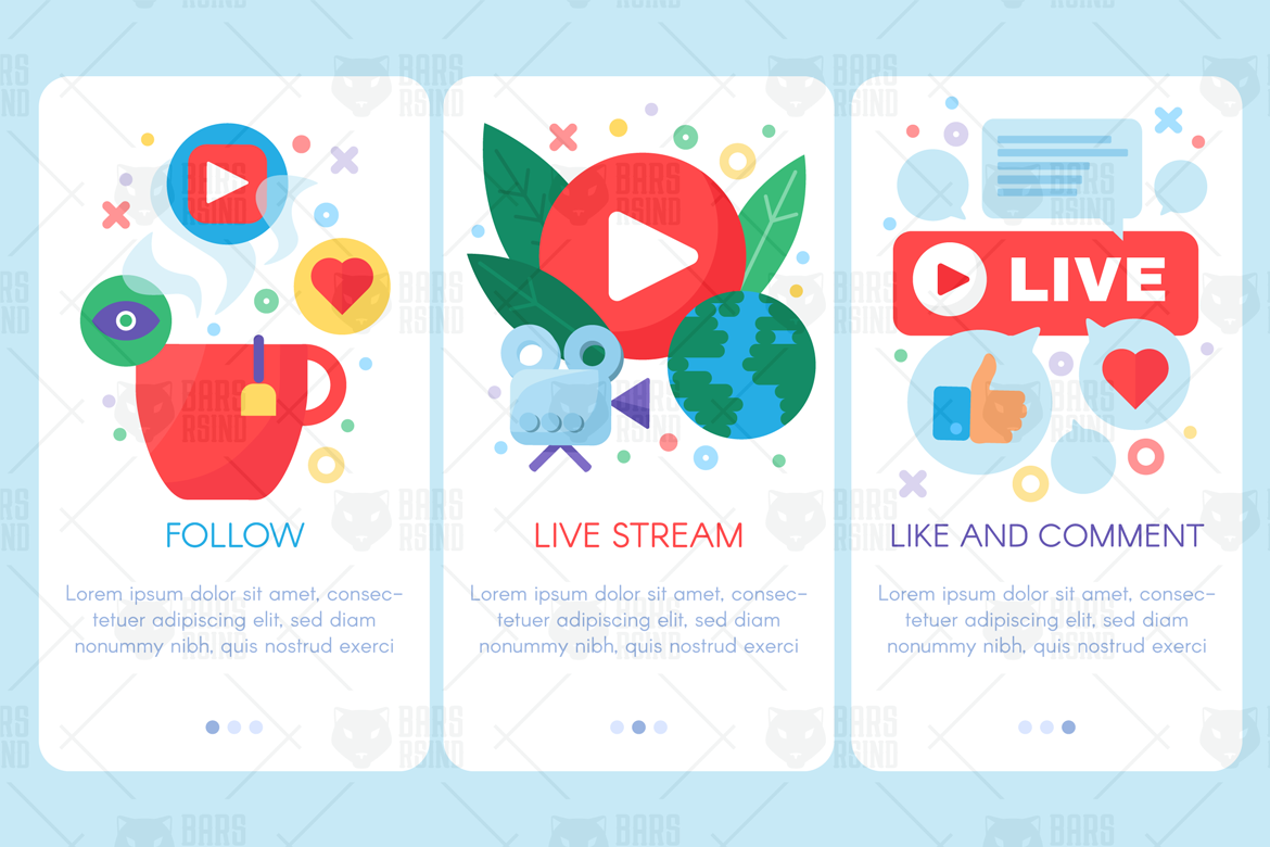 Download Иллюстрация "Live Stream Mobile Banners Set - Illustration" / Live Stream Mobile Banners Set - Illustration - Иллюстрация на тему графика live,multimedia,global,news,income,online,streaming,stream,broadcast,irl,social,producing,business,remote,work,technology,follow,like,comment,internet
