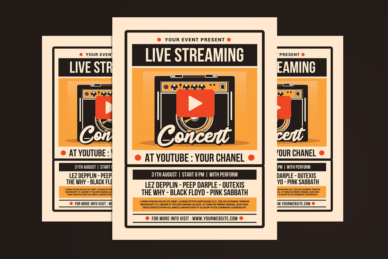 Download Фирменный стиль "Live Streaming Concert - Corporate Identity Template" / Live Streaming Concert - Corporate Identity Template - Фирменный стиль на тему графика ads,band,concert,festival,flyer,hype,instagram,instagram post,instagram story,live,marketing,modern,music,musician,online,podcast,poster,radio,seminar,singer