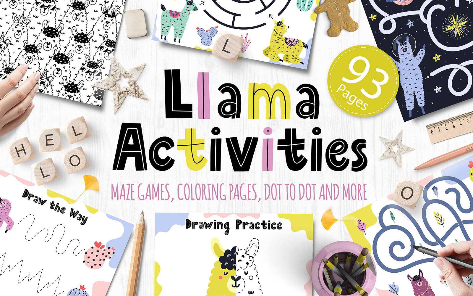 Download Иллюстрация "Llama Activities Collection - Illustration" / Llama Activities Collection - Illustration - Иллюстрация на тему графика activity,page,book,kids,maze,game,printable,dot,connect,labyrinth,coloring,puzzle,worksheet,llama,learning,collection,preschool,toddler,education,kindergarten