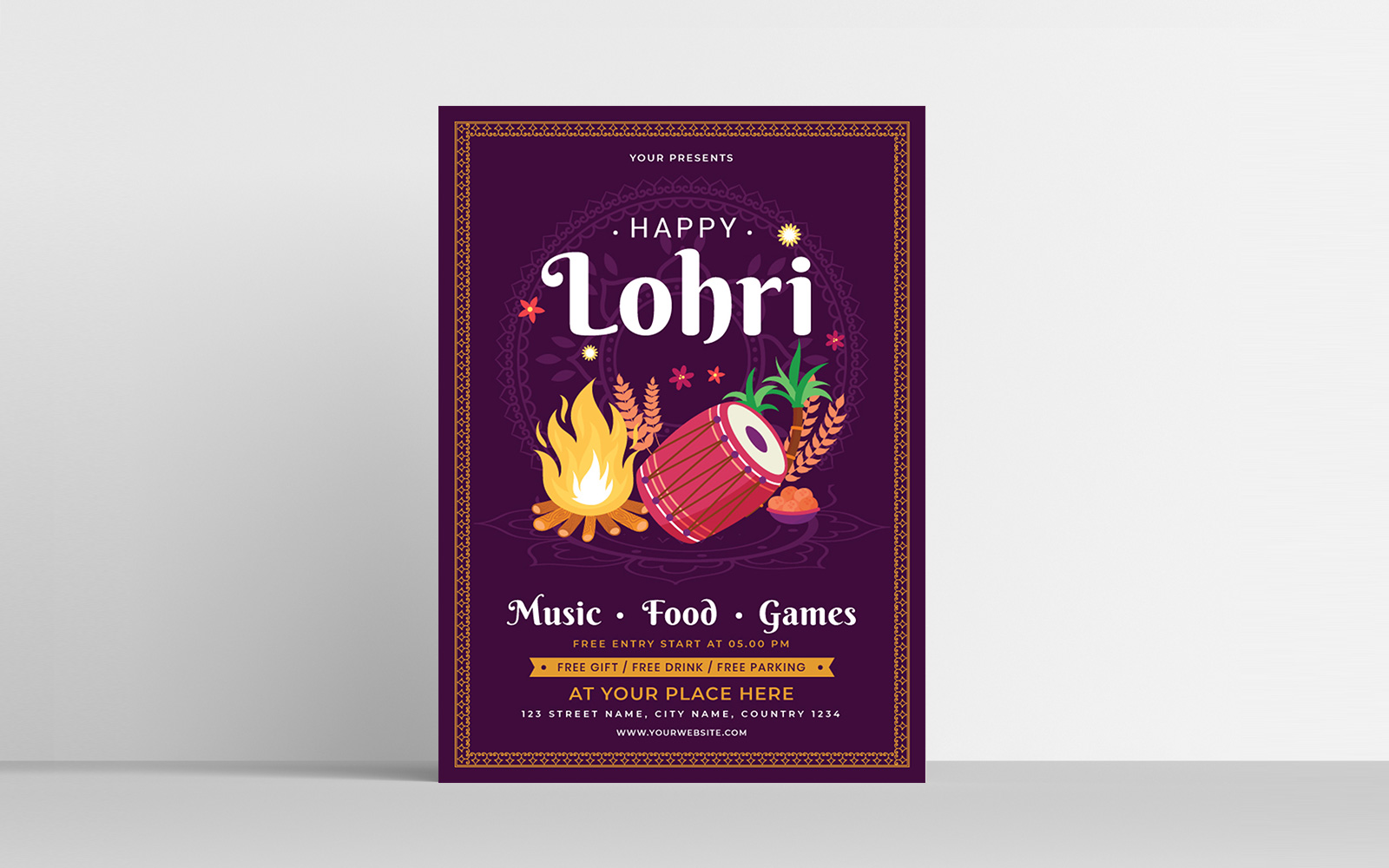 Download Фирменный стиль "Lohri - Corporate Identity Template" / Lohri - Corporate Identity Template - Фирменный стиль на тему графика holy,holiday,illustration,worship,wheat,decoration,jan,greeting,abstract,banner,happy,text,ethnic,flier,celebration,drum,religious,culture,festive,entertainment