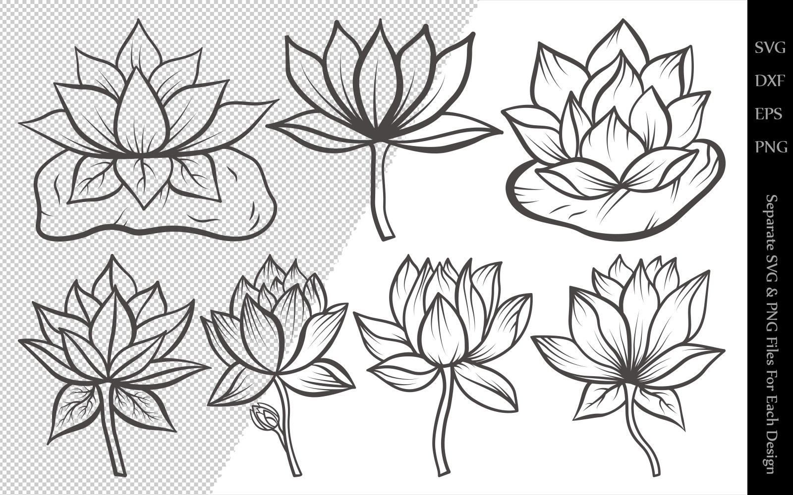 Download Иллюстрация "Lotus Flower Outline Bundle Drawings - Illustration" / Lotus Flower Outline Bundle Drawings - Illustration - Иллюстрация на тему графика lotus,flower,yoga,svg,floral,leaves,plant,design,dxf,eps,png,clipart,cricut,cut,file,line,drawing,sketch,wreath,botanical