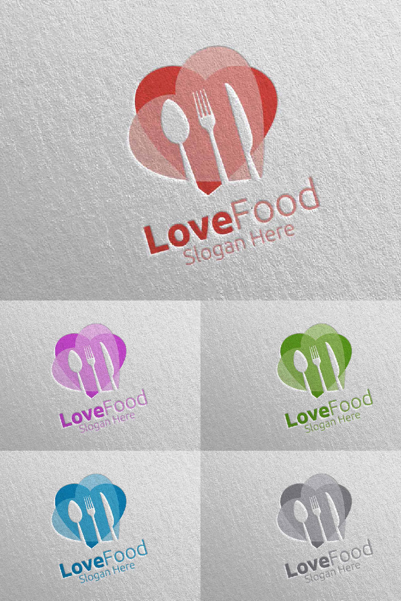 Download Шаблон логотипа "Love Healthy Food for Restaurant or Cafe 3 Logo Template" / Love Healthy Food for Restaurant or Cafe 3 Logo Template - Шаблон логотипа на тему графика food logo fork fresh cafe catering chef cooking restaurant knife diet eat eco green kitchen vegetarian spoon supplement nutrition love
