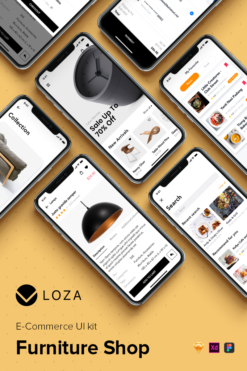 Download UI элементы "Loza - Furniture Shop App UI Kit " / Loza - Furniture Shop App UI Kit - UI элементы на тему графика social signup sign in profile ui mobile kit form message chat feed material concept furniture shop e-commerceundefined