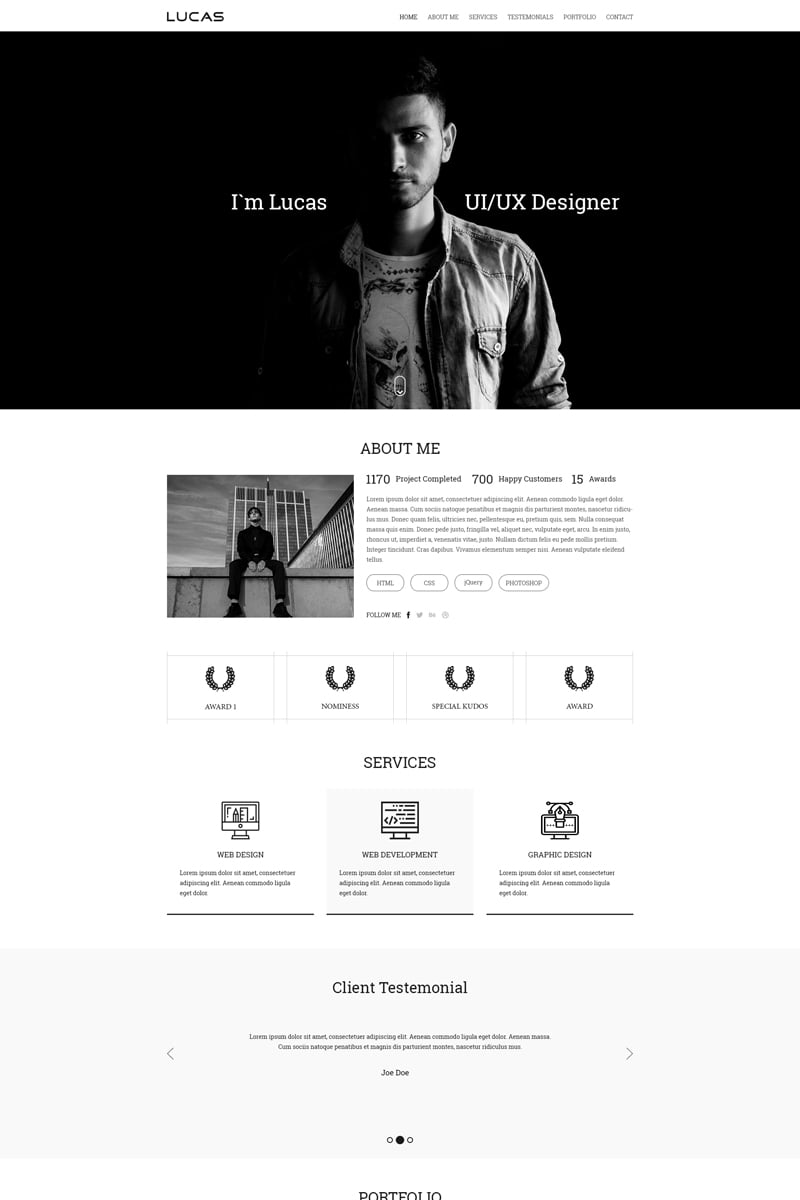 Download PSD шаблон "Lucas Portfolio-Onepage Creative PSD Template" / Lucas Portfolio-Onepage Creative PSD Template - PSD шаблон на тему портфолио дизайнера business creative freelancer minimal clean modern onepage