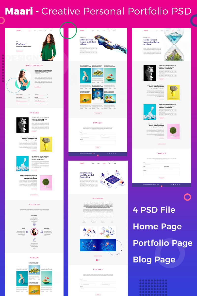 Download PSD шаблон "Maari - Creative Portfolio & Resume PSD Template" / Maari - Creative Portfolio & Resume PSD Template - PSD шаблон на тему персональная страница personal portfolio homepage blogpage blog website creative resume cv page landingpage modern responsive bootstrap grid work