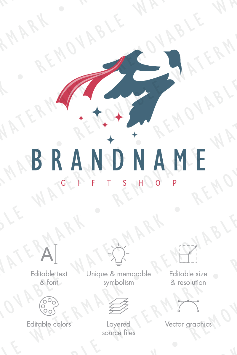 Download Шаблон логотипа "Magpie & Ribbon Logo Template" / Magpie & Ribbon Logo Template - Шаблон логотипа на тему графика magpie,bird,ribbon,illusion,magic,wish,gift,messenger,freedom,logo,design,template,hope,inspiration,charity,church,wedding,funeral,guide,leave-taking