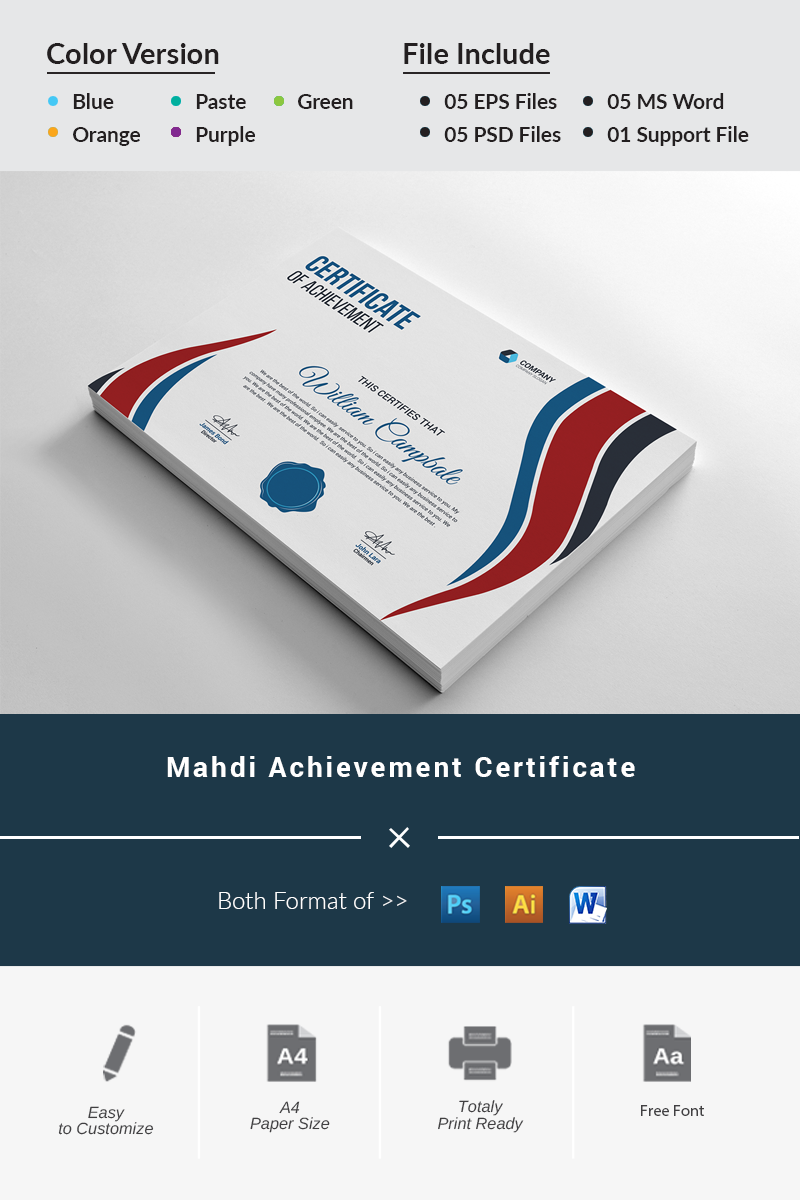 Download Шаблон сертификата "Mahdi Achievement Certificate Template" / Mahdi Achievement Certificate Template - Шаблон сертификата на тему графика achievement,award,background,border,certificate,coupon,diploma,engraved,engraving,frame,guilloche,multipurpose,pantone,professional,protected,rosette,secure,security,paper,two