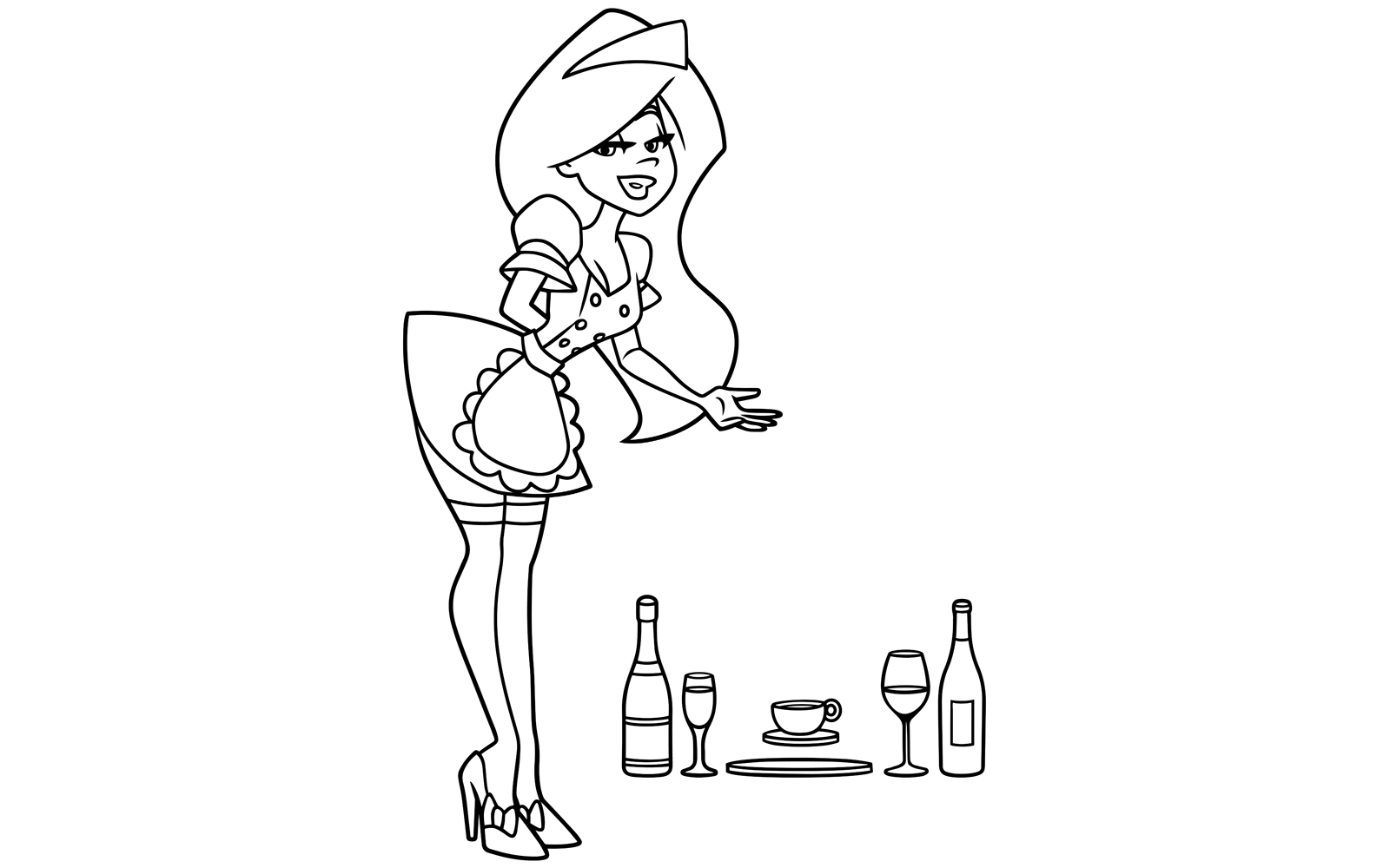 Download Иллюстрация "Maid Serving Drinks Line Art - Illustration" / Maid Serving Drinks Line Art - Illustration - Иллюстрация на тему графика maid,woman,job,costume,uniform,service,housemaid,french,servant,coloring,book,line art,illustration,young,attractive,sexy,hot,pretty,beautiful,seductive