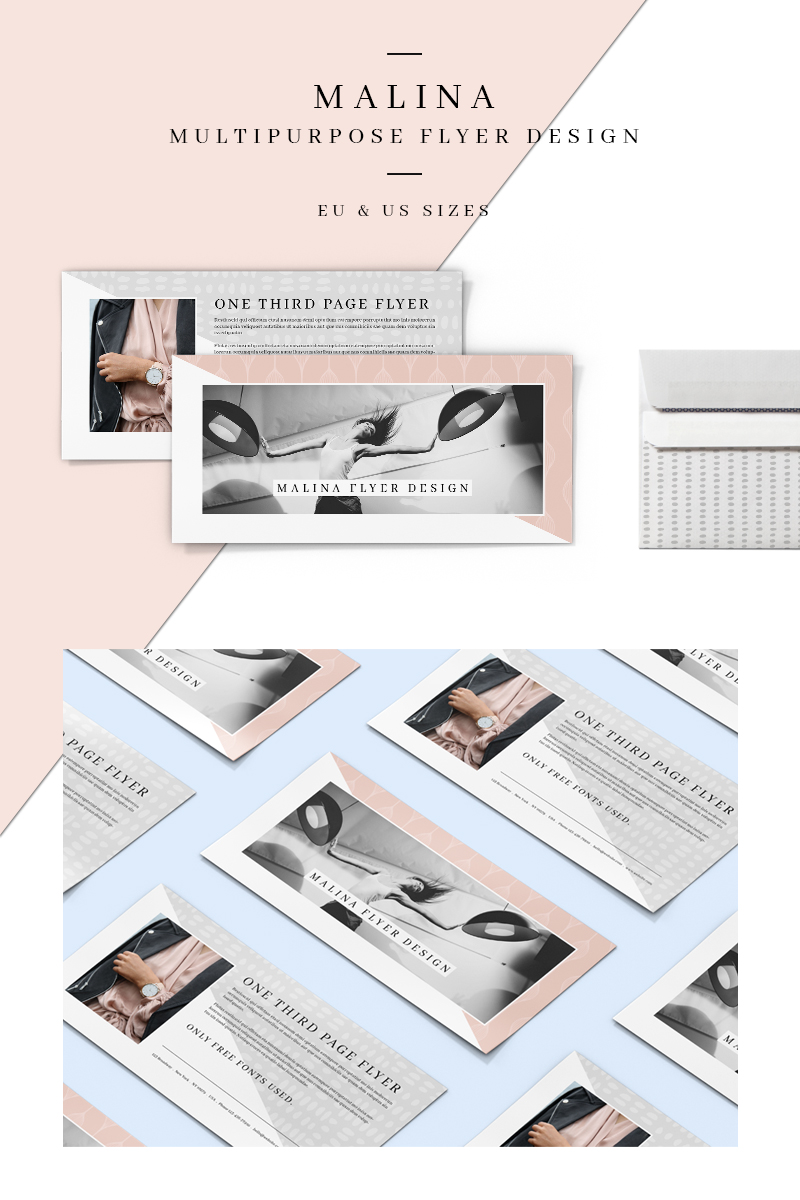 Download Фирменный стиль "MALINA One Third Page Flyer + Pattern - Corporate Identity Template" / MALINA One Third Page Flyer + Pattern - Corporate Identity Template - Фирменный стиль на тему графика flyer template minimalist minimalism clean simple modern creative female feminine seamless patterns one third page eu us size din lang
