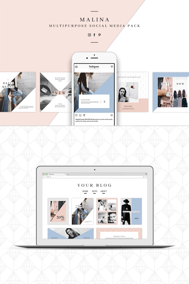 Download Malina — 20 паттернов для соцсетей / MALINA Pack & 20 Pattern Social Media Template - Шаблон для соцсетей на тему графика social media template instagram pinterest facebook minimalist minimalism clean simple modern female seamless patterns bundle post posts beauty fashion lifestyle