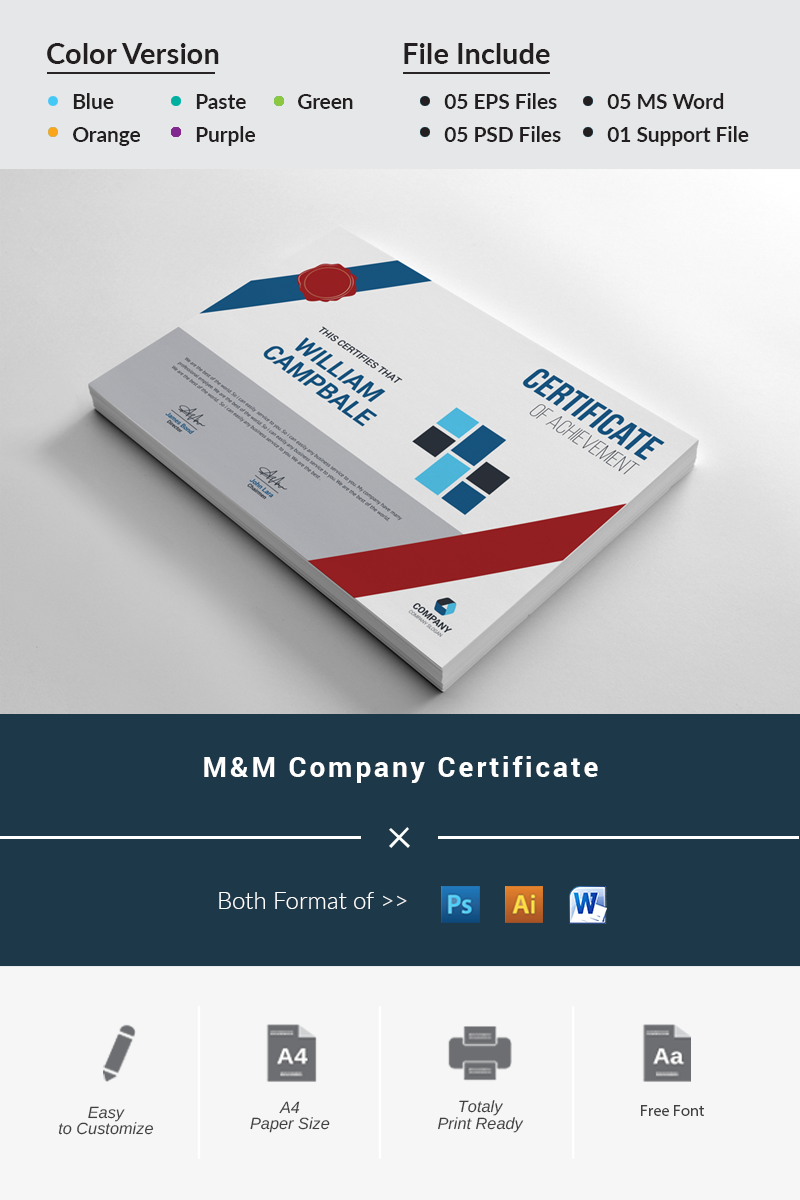 Download Шаблон сертификата "M&M Company Certificate Template" / M&M Company Certificate Template - Шаблон сертификата на тему графика achievement,award,background,border,certificate,coupon,diploma,engraved,engraving,frame,guilloche,multipurpose,pantone,professional,protected,rosette,secure,security,paper,two