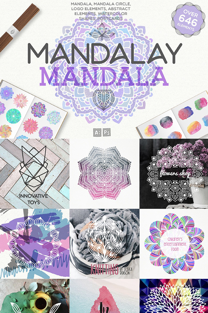 Download Иллюстрация "Mandalay Mandala [ 646 Elements ] - Illustration" / Mandalay Mandala [ 646 Elements ] - Illustration - Иллюстрация на тему графика mandala frame circle logo element watercolor shape abstract elements postcard branding watercolour shape texture background social media summer spring botanical