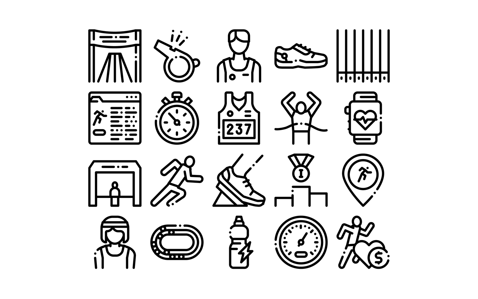 Download Набор иконок "Marathon Collection Elements Set Vector Icon" / Marathon Collection Elements Set Vector Icon - Набор иконок на тему people marathon,collection,elements,icons,set,vector,thin,line,human,athlete,sport,silhouette,running,uniform,stadium,shoe,concept,linear,pictograms,monochrome