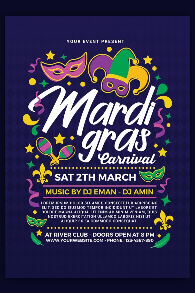 Download Фирменный стиль "Mardi Gras Carnival - Corporate Identity Template" / Mardi Gras Carnival - Corporate Identity Template - Фирменный стиль на тему графика brazil brazilian carnival flyer celebration costume template mardi gras mask masquerade parade party photoshop post saint louis st louis tuesday