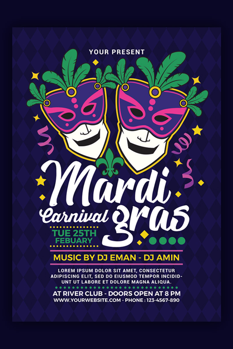Download Фирменный стиль "Mardi Gras Carnival - Corporate Identity Template" / Mardi Gras Carnival - Corporate Identity Template - Фирменный стиль на тему графика brasil brasileiro brazil brazilian carnaval carnival party celebration club costume dark event festa festival flyer holiday latin mardi gras mardigras