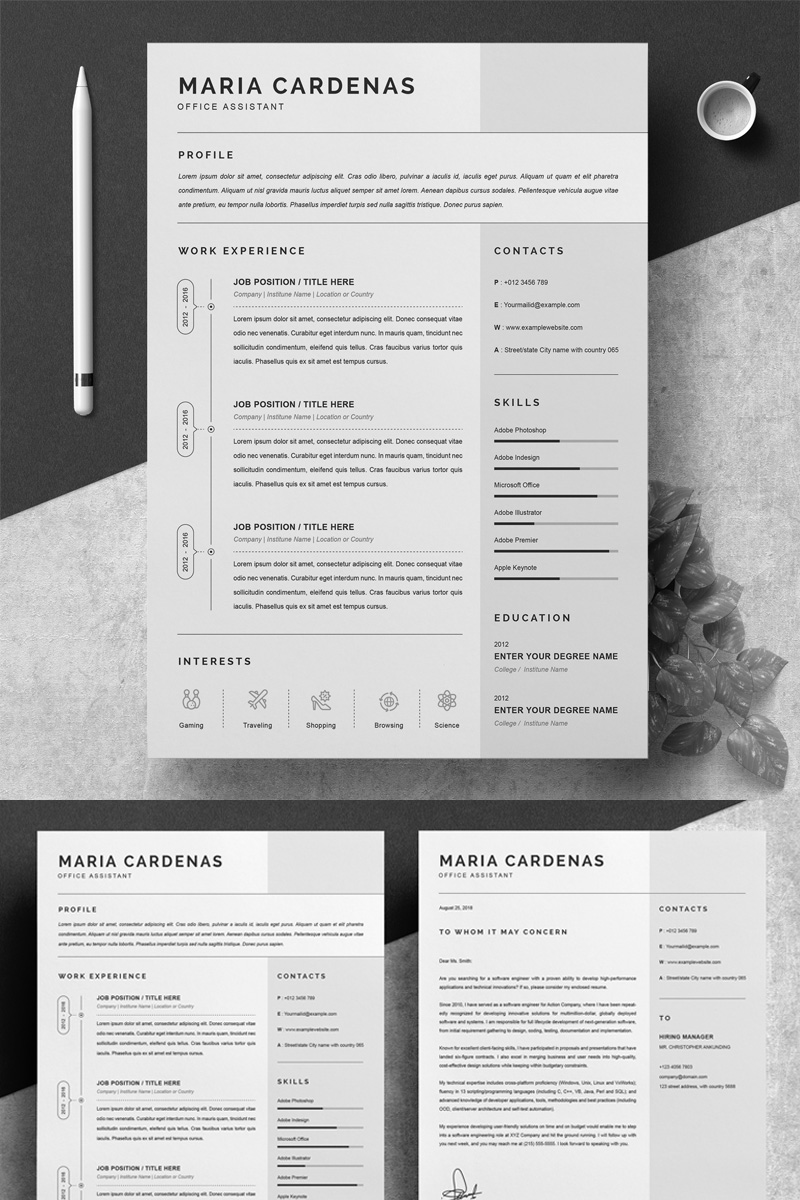 Download Резюме "Maria Resume Template" / Maria Resume Template - Резюме на тему графика 1 page resume 2 clean cv cover letter design template illustrator eps mac pages microsoft word modern photoshop psd professional