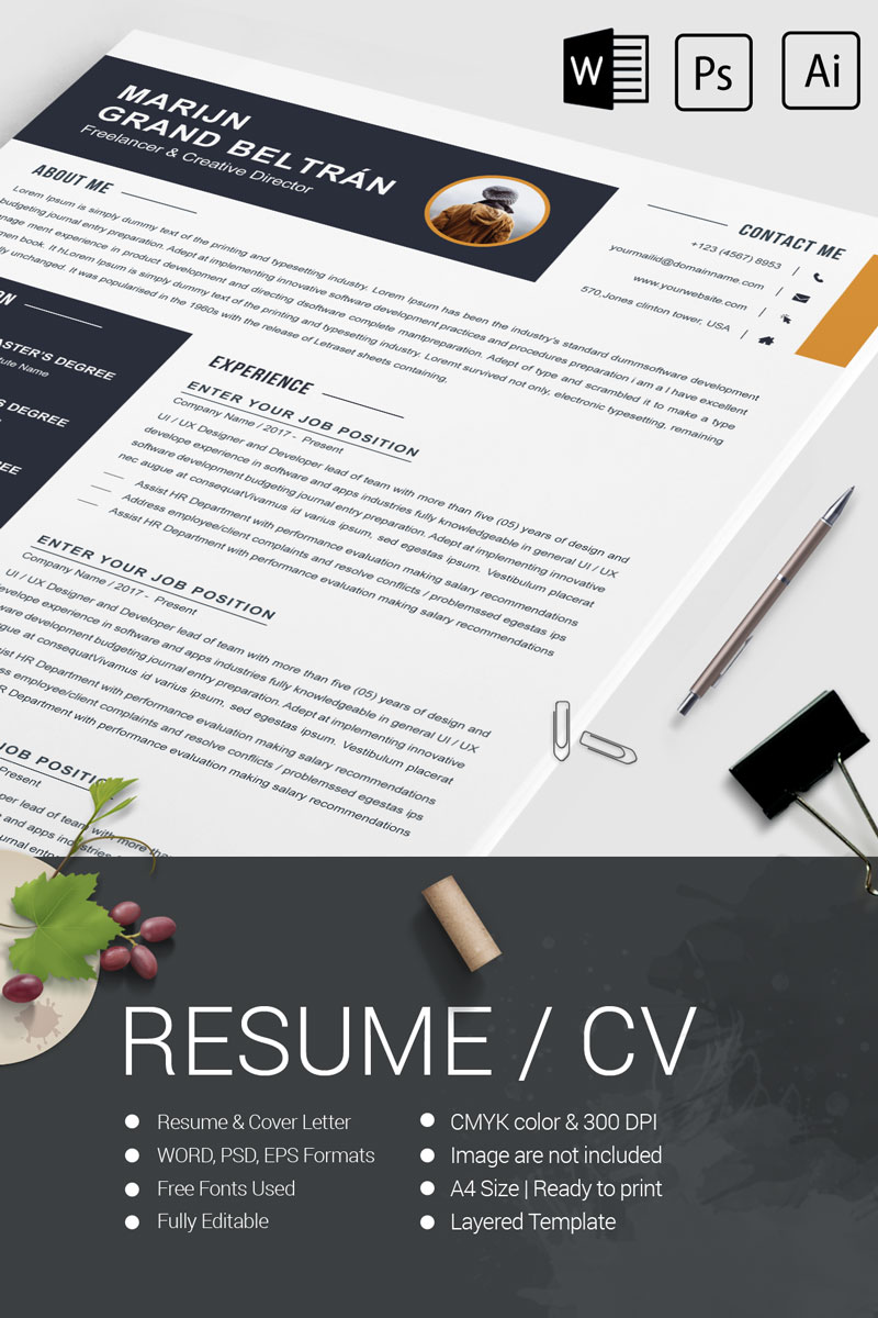 Download Резюме "Marijn Grand Beltran Resume Template" / Marijn Grand Beltran Resume Template - Резюме на тему графика 2 page a4 clean cv design elegant resume female feminine infographic letter minimalist modern portfolio professional indesign minimal pages