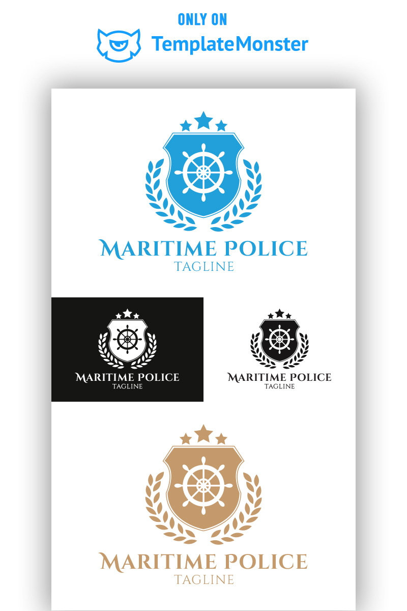 Download Шаблон логотипа "Maritime Police Logo Template" / Maritime Police Logo Template - Шаблон логотипа на тему графика police boat marine ship sailor nautical shipping vintage shipwright security port coasts