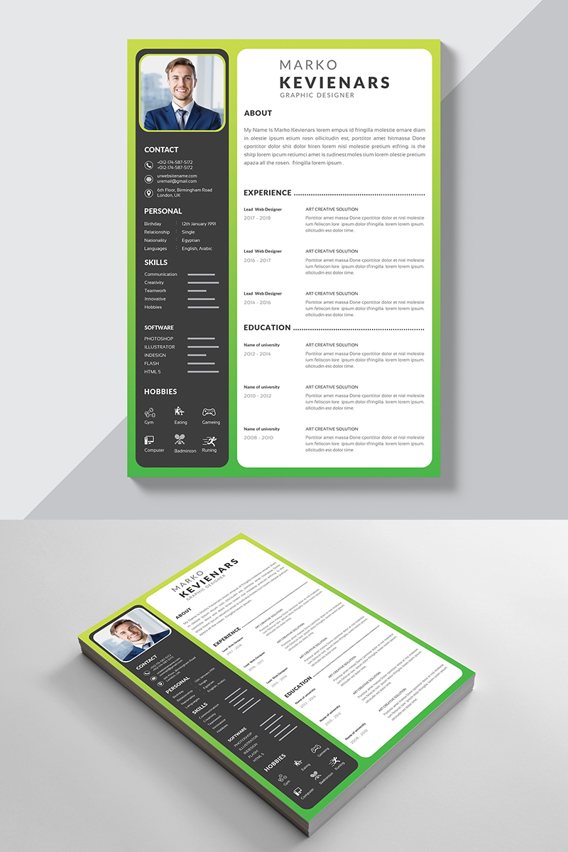 Download Резюме "Marko Kevienars Resume Template" / Marko Kevienars Resume Template - Резюме на тему графика resume business template cv work template job document print curriculum vitae interview professional experience employment ready employer paperwork mockup bundle