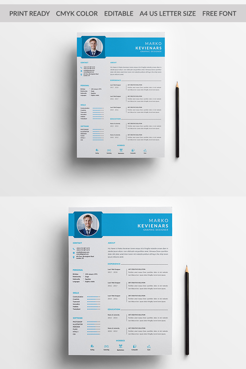 Download Резюме "Marko Kevienars Resume Template" / Marko Kevienars Resume Template - Резюме на тему графика award clean cv resume creative curriculum vitae template design employment hobbies icons indesign job letter minimalist modern corporate creative a4