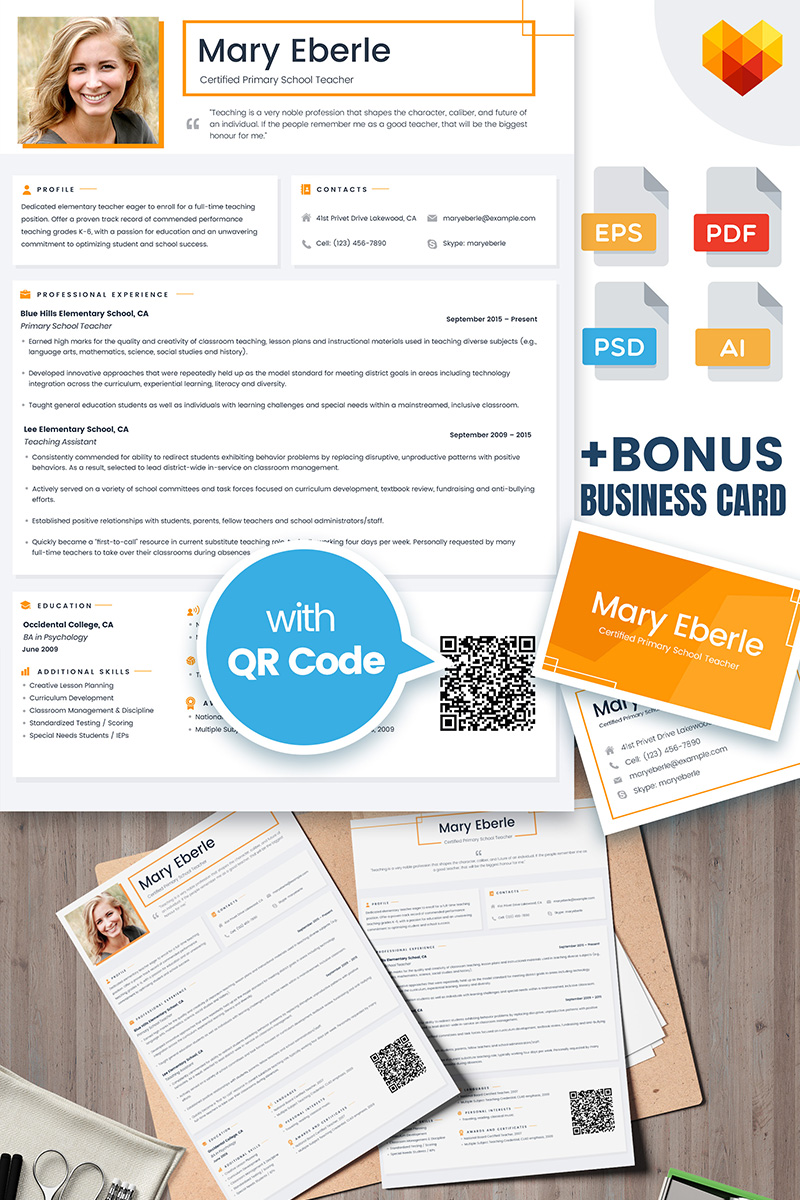 Download Резюме "Пример резюме преподавателя" / Mary Eberle - Certified Teacher Resume Template - Резюме на тему графика