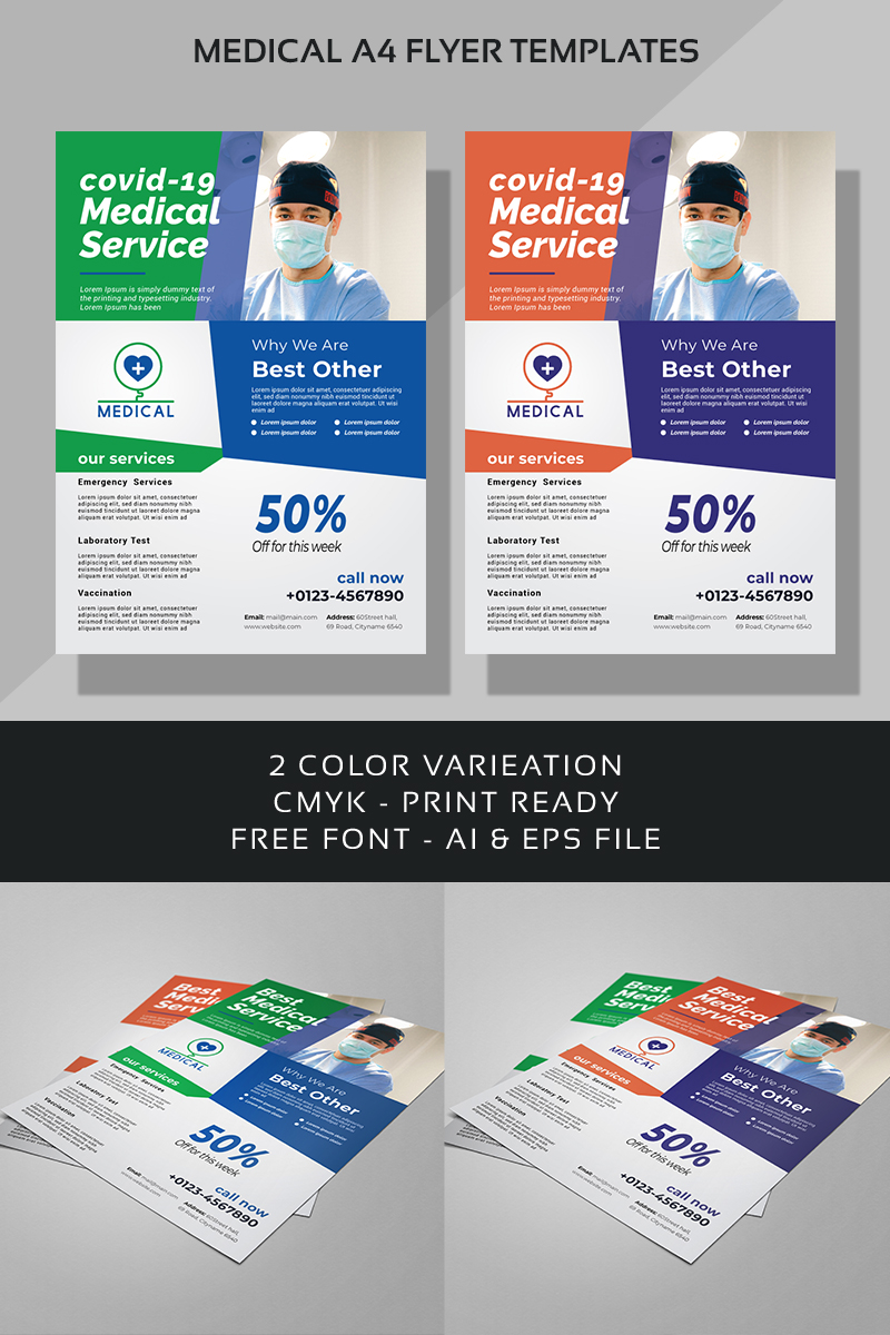Download Фирменный стиль "Medical A4 Flyer Design - Corporate Identity Template" / Medical A4 Flyer Design - Corporate Identity Template - Фирменный стиль на тему графика a4 business flyer clean clinic corona virus covid19 doctor emergency health hospital medical nurse print ready template