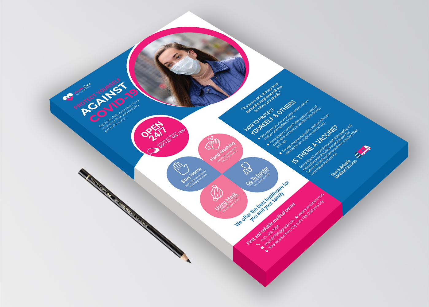 Download Фирменный стиль "Medical Flyer Design - Corporate Identity Template" / Medical Flyer Design - Corporate Identity Template - Фирменный стиль на тему графика a4,flyer,business,clean,clinic,coronavirus,covid-19,dentist,doctor,emergency,health,hospital,medical,medicalflyer,modern,multi,purpose,use,multipurpose,nurse
