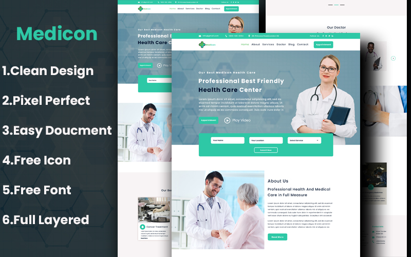 Download PSD шаблон "Medicon Medical PSD Template" / Medicon Medical PSD Template - PSD шаблон на тему графика doctor,care,clinic,dentist,health,pharmacy,health care,hospital,medical,surgeon