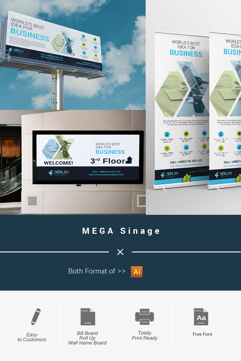 Download Фирменный стиль "MEGA Sinage - Corporate Identity Template" / MEGA Sinage - Corporate Identity Template - Фирменный стиль на тему графика billboard art artistic blue building business rollup colorful corporate corporet creative graphics green hi-quality id kit internet logo modern multimedia