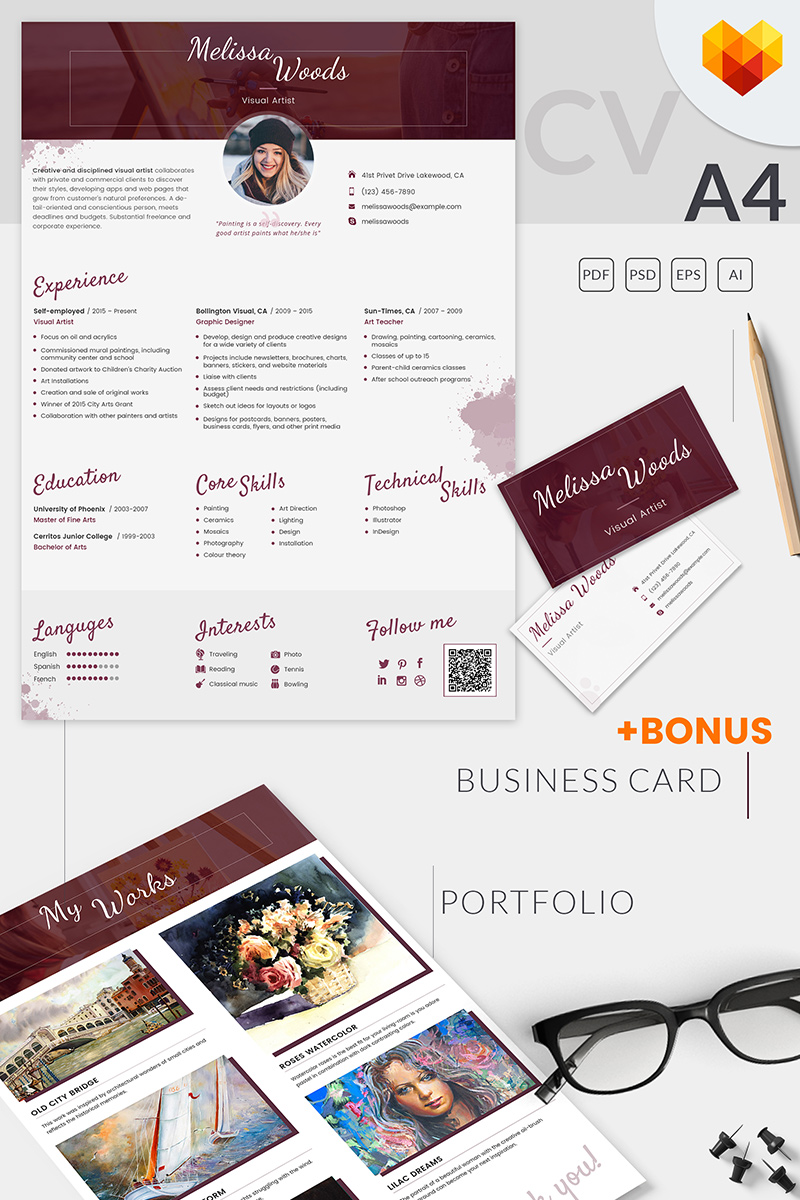 Download Резюме "Пример резюме кафе работников" / Melissa Woods - Visual Artist Resume Template - Резюме на тему графика