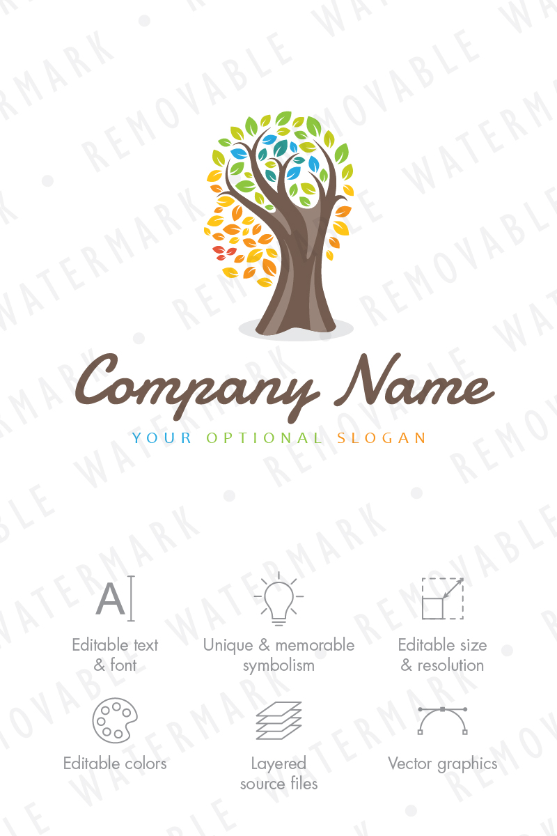 Download Шаблон логотипа "Mental Health Logo Template" / Mental Health Logo Template - Шаблон логотипа на тему графика tree leaf healthcare idea healthy wellness education growth colorful brain human head psychology mental mind intellect memory logo design template